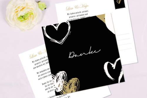 Dankestext. Die Karte kommt im Postkartenformat und