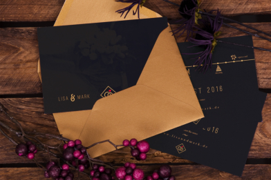 passenden Einladungskarten, Tischaufsteller und