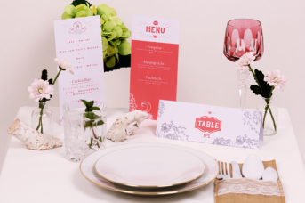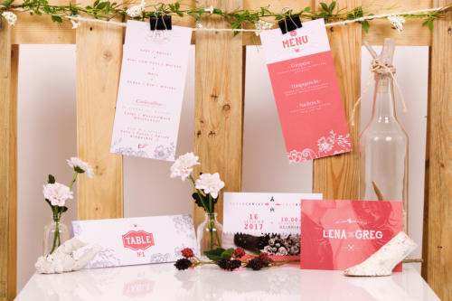 passenden Einladungskarten, Tischaufsteller und