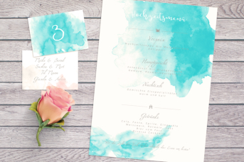 passenden Einladungskarten, Tischaufsteller und